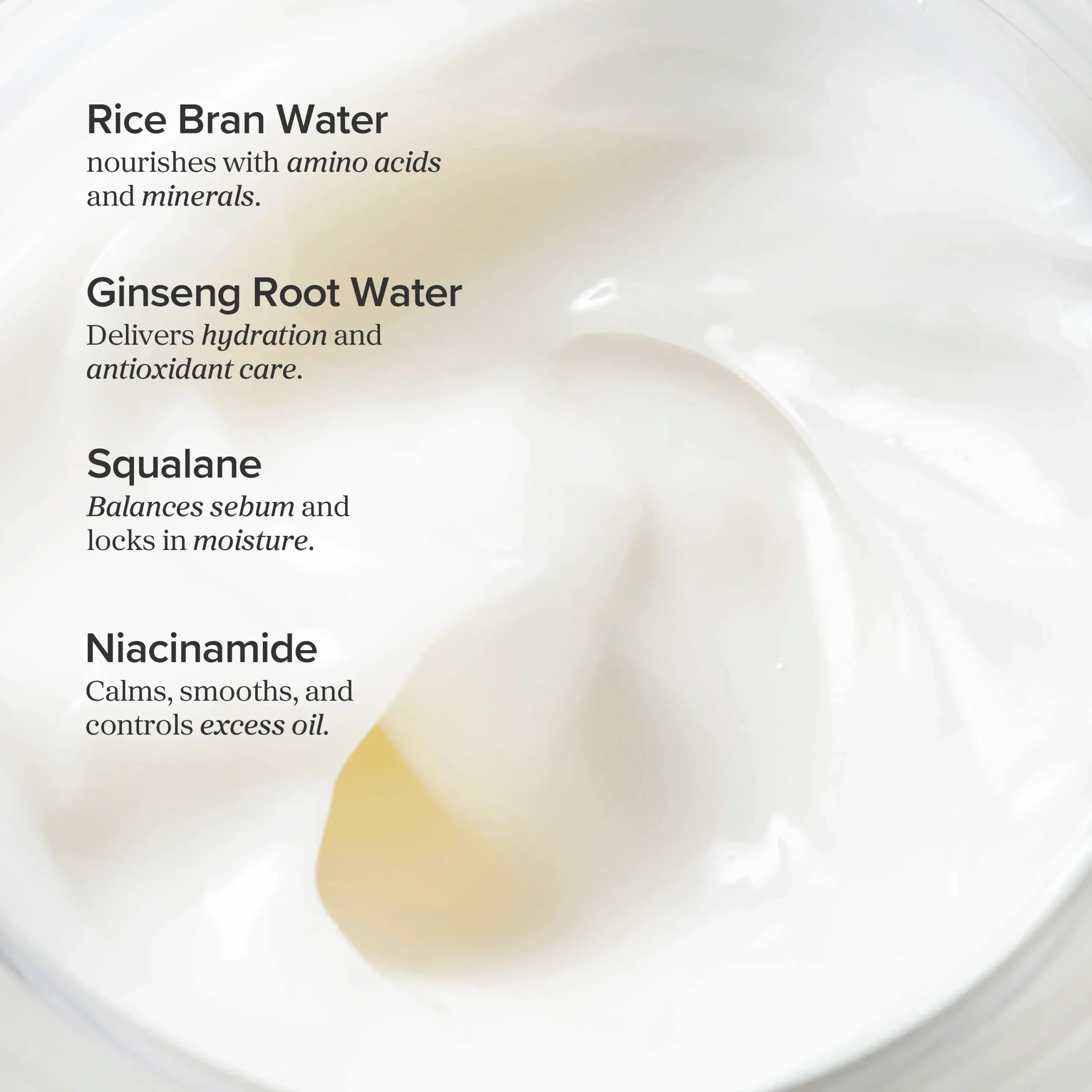 Rice Bran Water (29%): Rich in amino acids and minerals, it has been used for centuries in Korea to soften and brighten the complexion.